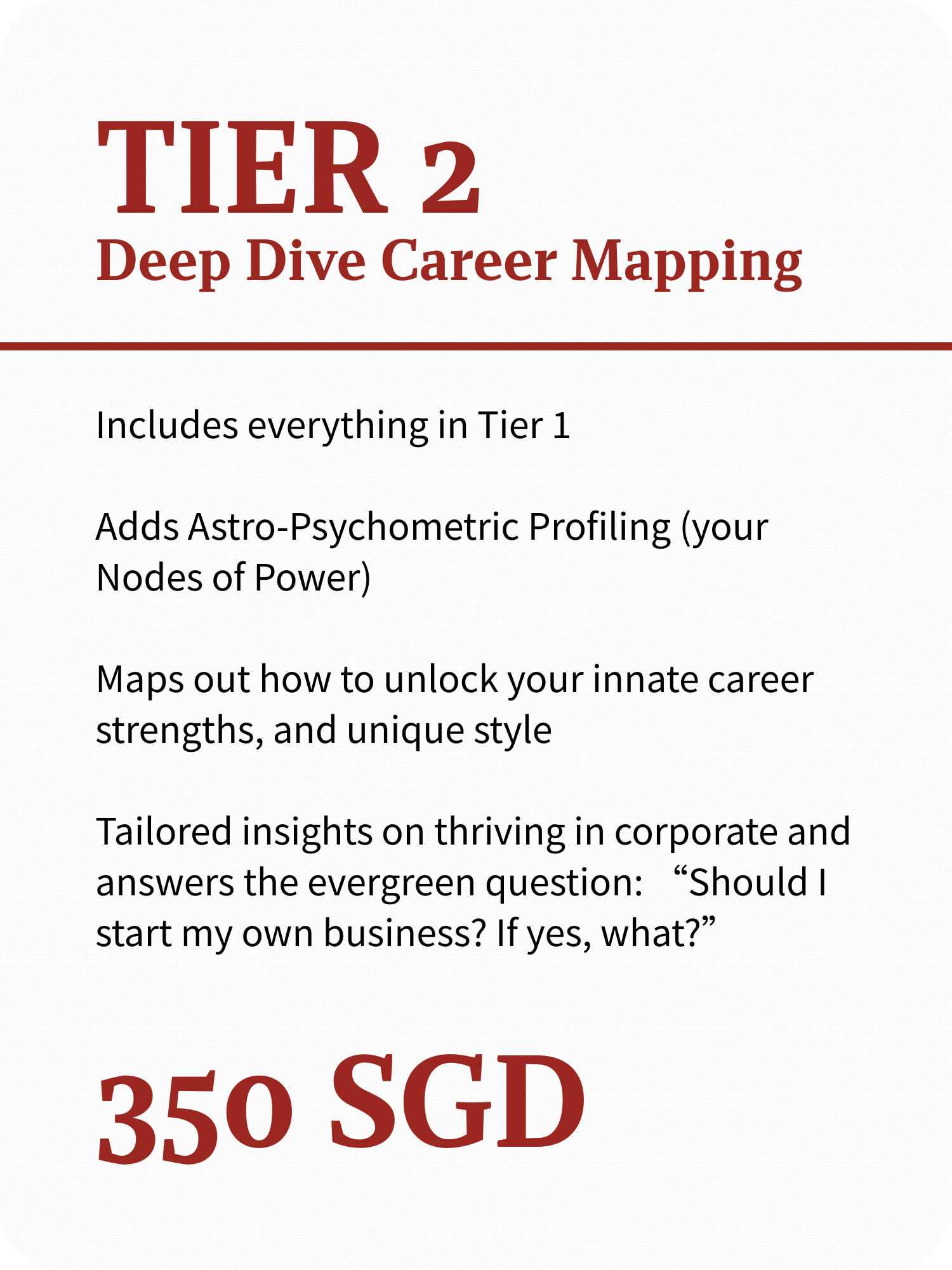 Every session is designed to give you clear, actionable steps you can apply immediately — whether it’s how to reframe your strengths in an interview, when to time your career move, or what roles align with your natural abilities.